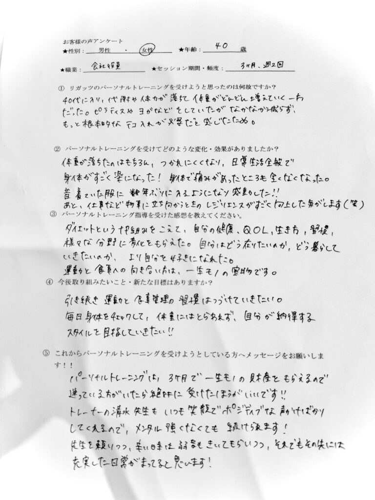 ① リガッツのパーソナルトレーニングを受けようと思ったのは何故ですか?