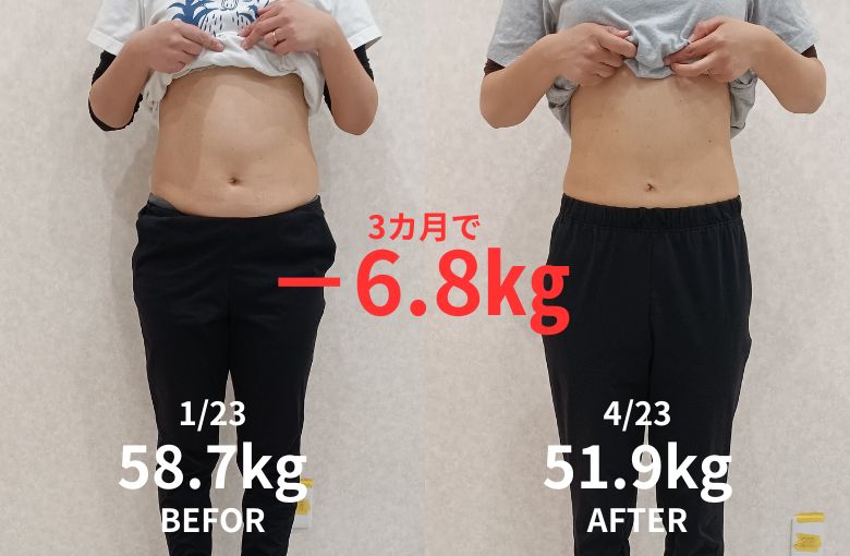 58.7㎏→51.9㎏、3カ月24回コースで-6.8㎏のダイエットに成功しました。
