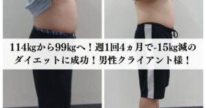 トレーニング中に「前より動きがスムーズになりましたね!」といった声がけをいただけたことで、自分では気づきにくい変化にも気づくことができ、体重が停滞した時期も前向きに乗り越えることができました。