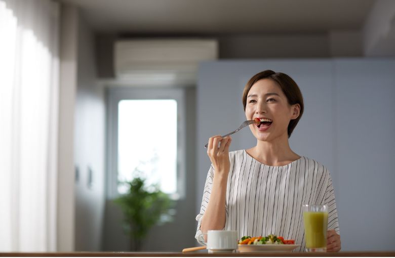 朝食を抜くと昼以降の食欲が強まり、かえって過食につながるため注意が必要です。